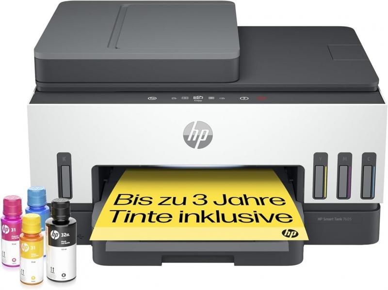 HP Smart Tank 7605 4-in-1 Multifunktionsdrucker, 50€ Cashback, (WLAN; Duplex; ADF) – 3 Jahre Tinte inklusive, 3 Jahre Garantie, großer Tintentank, hohe Reichweite, Drucken in hoher Qualität